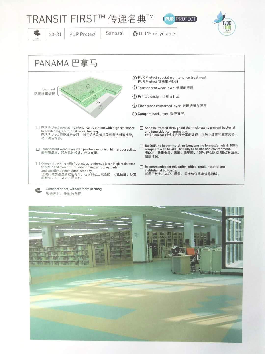 傳遞名典巴拿馬經(jīng)過PUR Protect維護處理及Sanosol抗菌防霉處理,出色的抗刮痕性及耐     鞋底刮擦性能,易于清潔保養(yǎng)。適用于:教育、辦公、零售、醫(yī)院和公共建筑等領域。